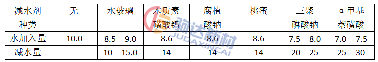 由表2可以看出,各種減水劑均具有較好的減水效果,其中以α甲萘磺酸為佳。